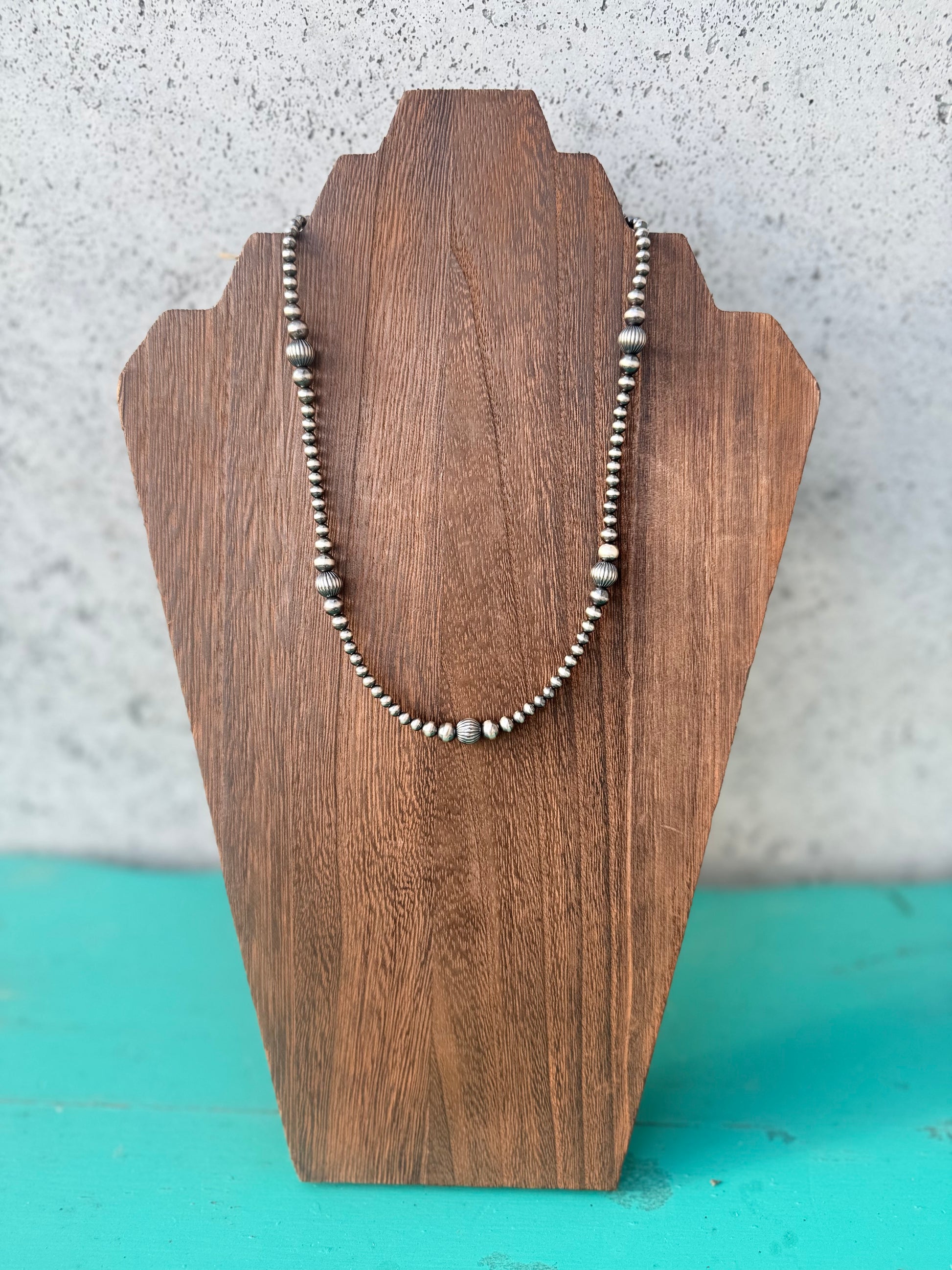 Mia is a 18in 4mm, 5mm 6mm and 8mm Corrugated Navajo Pearl.